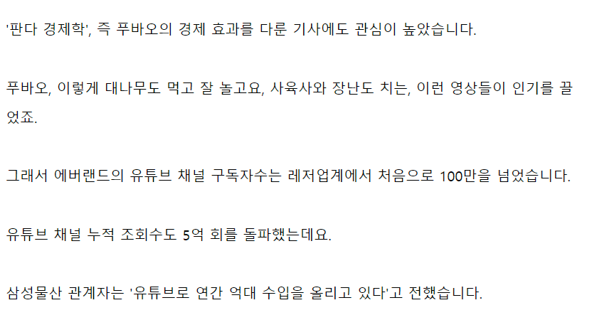 판다의 비용은 삼성 에버랜드가 중국에 내고 있습니다.