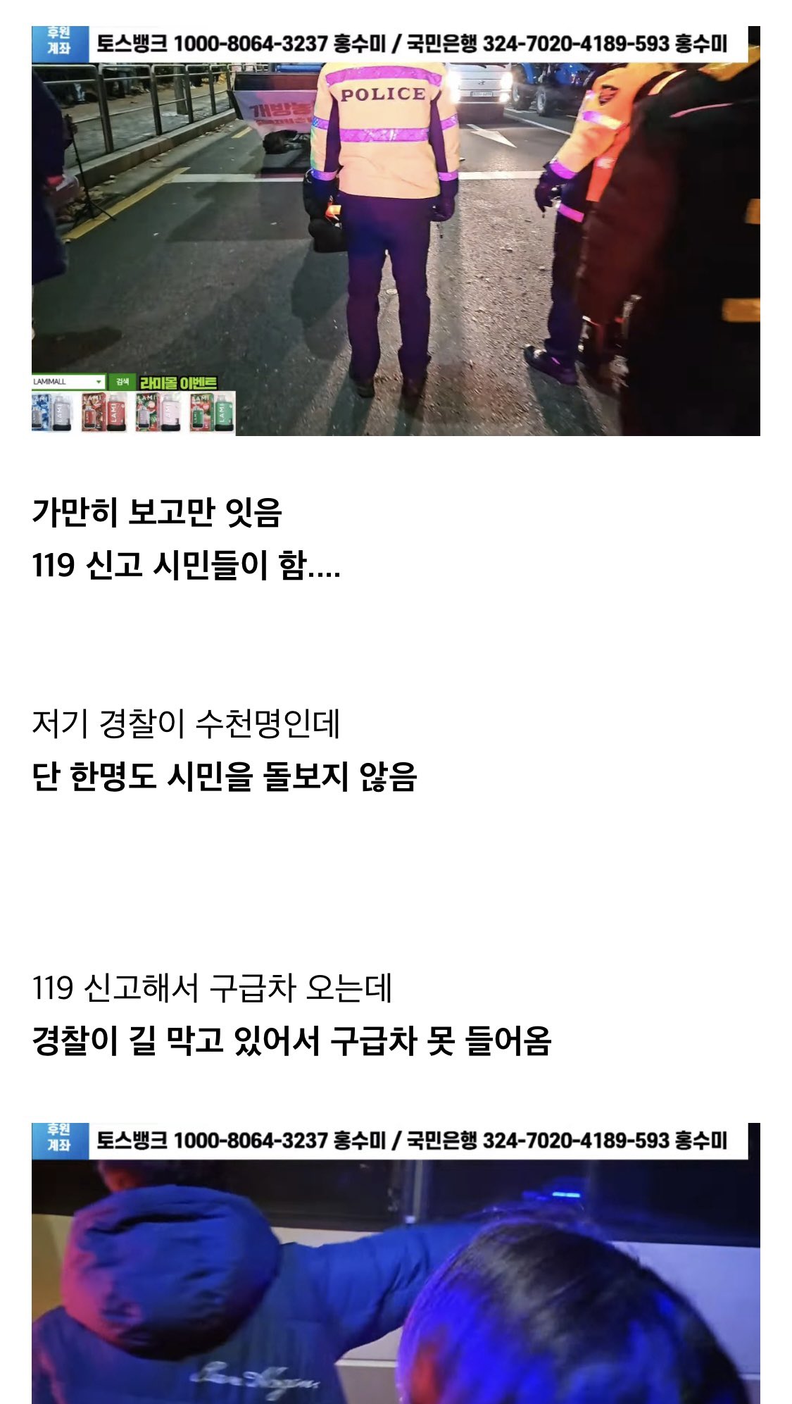 그리고 경찰들이 저체온증온 사람 119 못타게 막음