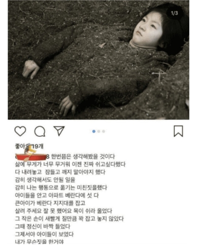 아이를 죽이고 스스로 목숨을 끊으려 한 부분을 김새론이 데뷔후 인스타그램에 스스로 올린 부분