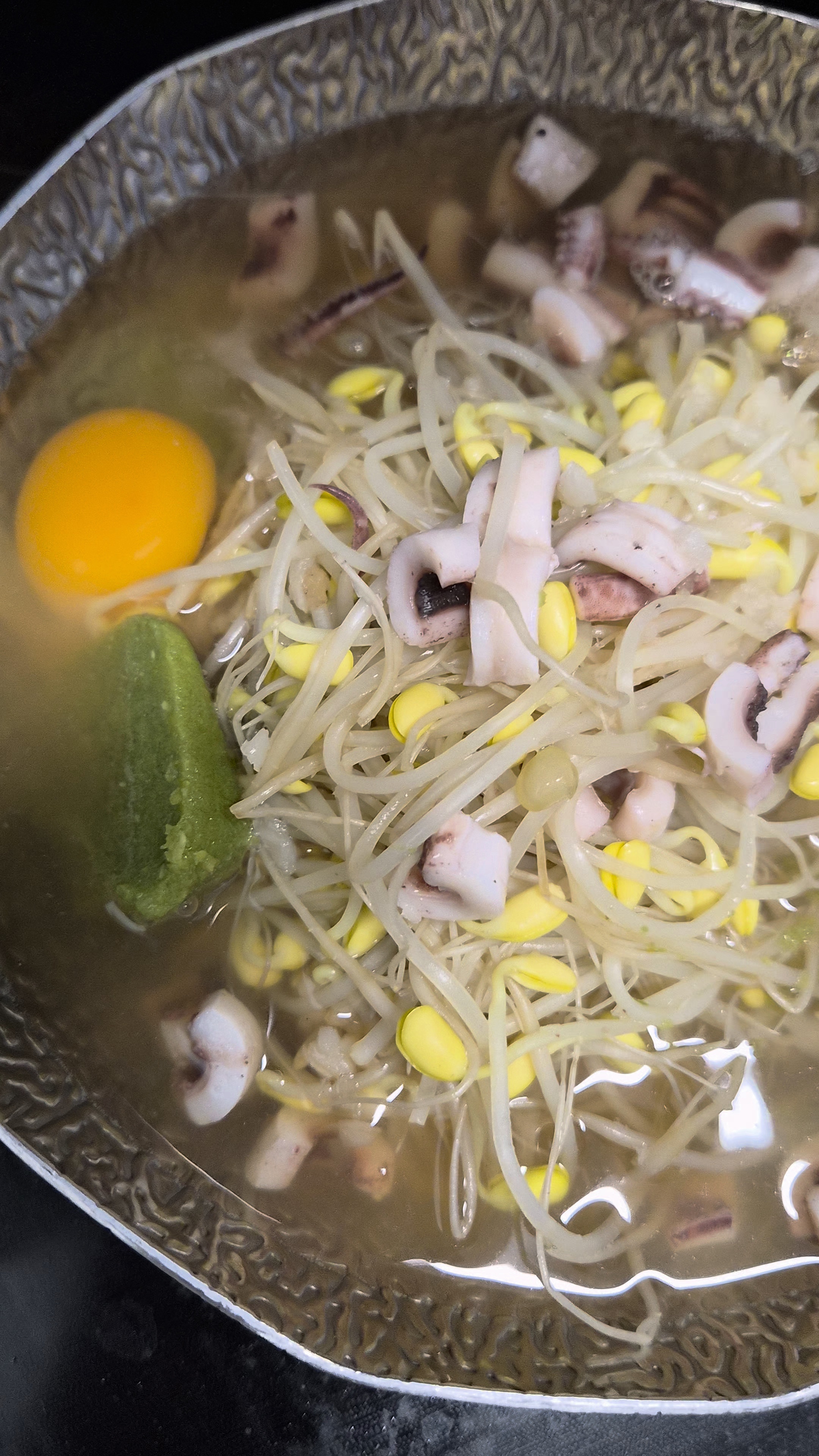 그 위에 데친 콩나물을 올려주고