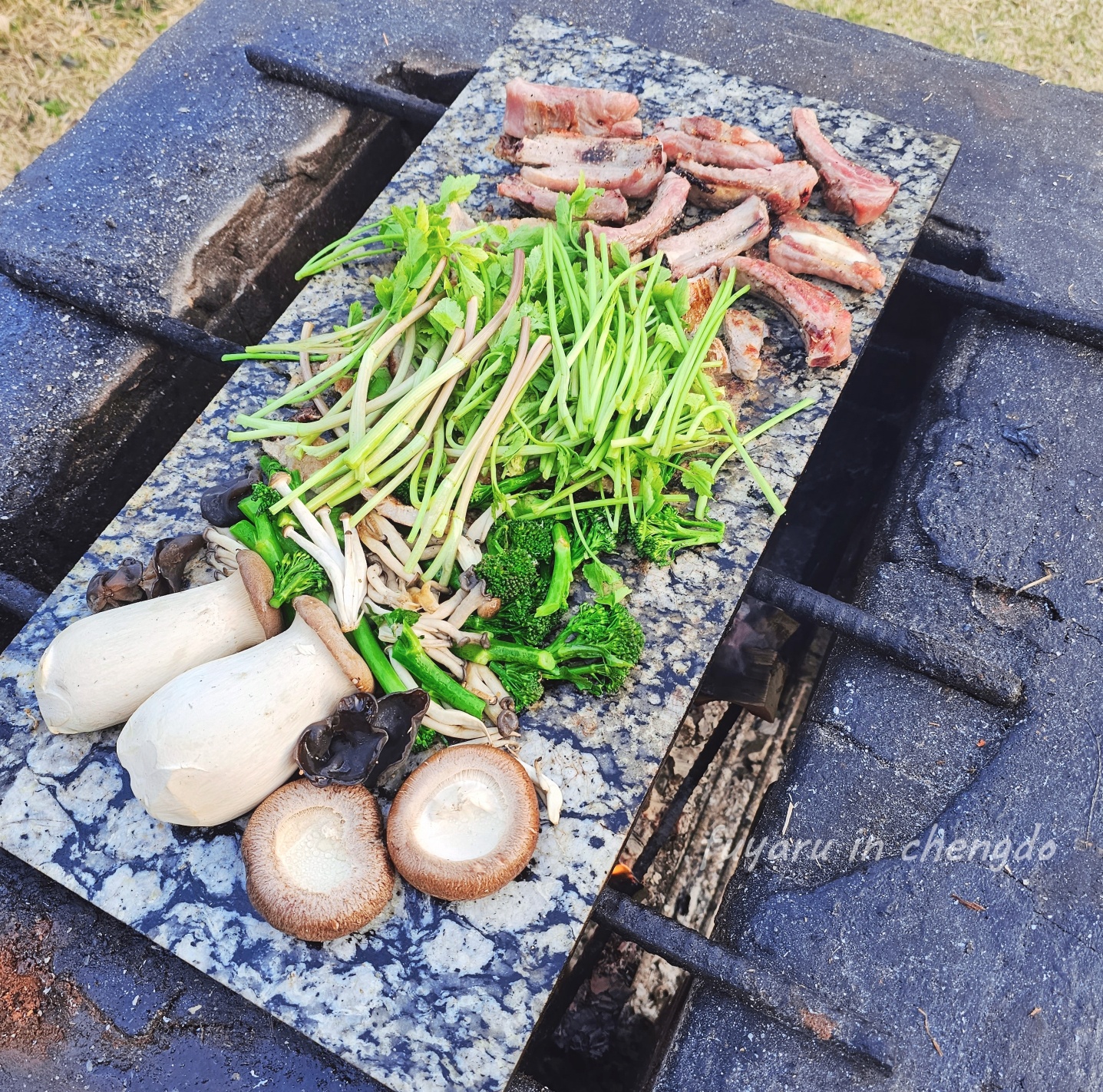 • 저녁: 독채 마당에서 돌판에 직접 구워먹는 바베큐! 대리석은 35,000원 추가 비오는 날엔 이용 불가