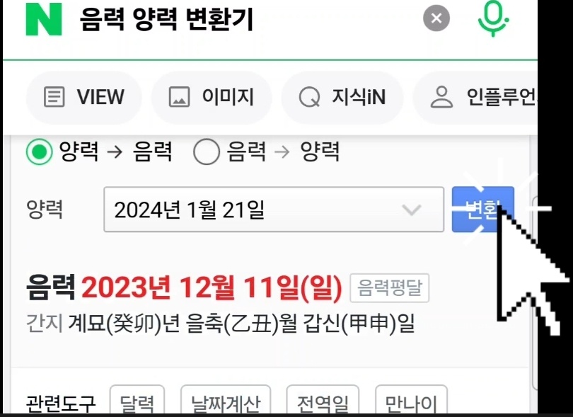 검색창에 음력양력변환기를 검색해주세요.