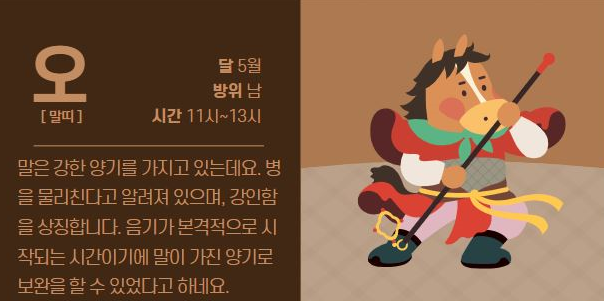 오시는 am 11 - pm 1 _ 음기의 시간이라 양기가 강한 말이 활동할 시간
